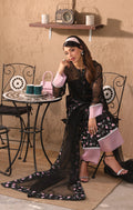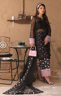 An elegant black self-embroidered organza sequined shirt, paired with screen-printed culotte pants for a super cute look. The outfit is completed with a beautiful organza dupatta finished with a screen-printed border on all four sides.