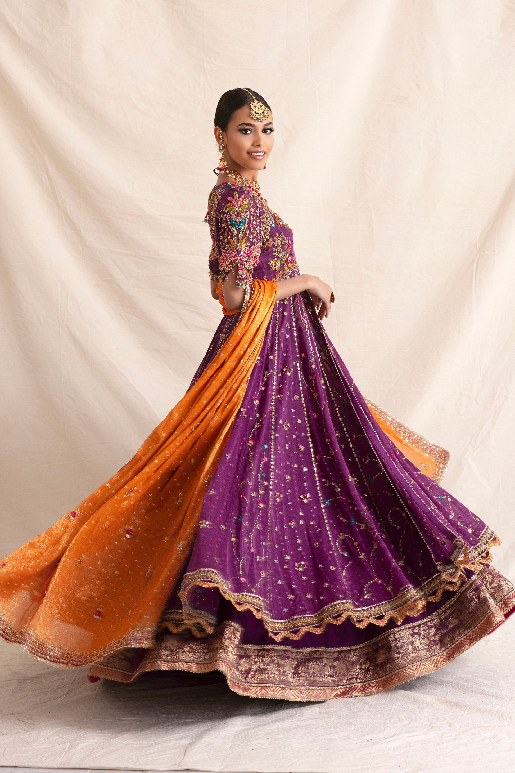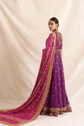 Feel like a princess in this purple pishwas. Easy to wear in cotton net and featuring delicate zardozi kaam, this outfit is completed with a chhan dupatta.