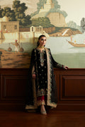 Feel like a timeless beauty in this black and gold kurta. The outfit features delicate floral zardozi kaam from the neck to the border. The look is completed with a stunning chundri dupatta.