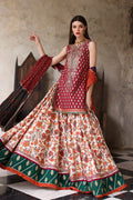 Shirt ,Printed flared Legnha and Crushed Printed Lawn detailing dupatta