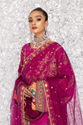 Exquisite tilla, sequence, and resham embroidery adorned with meticulous hand-embellishments of naqshi, gota, gota tikki, and French knots.