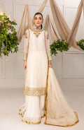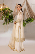 Immerse yourself in the intricate beauty of our ensemble, adorned with resham, tilla, and sequence embroidery. Experience the enchantment of hand embellishments like dabka, nakshi, crystal moti, pearls, and Swarovski, creating a captivating masterpiece