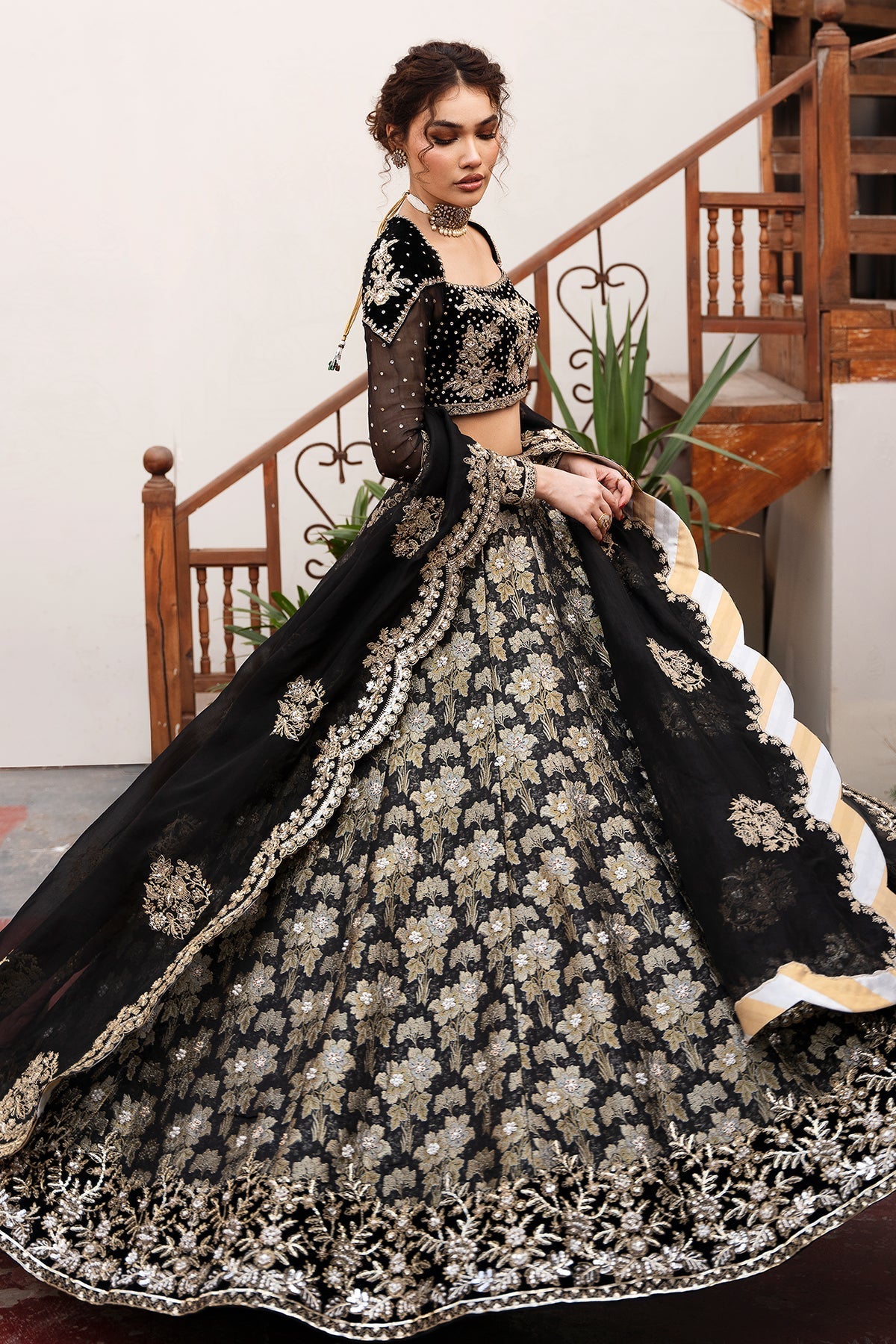 A tapestry of elegance woven with tilla and sequins, resham threads, and pure zardozi artistry. Embellished with the brilliance of Swarovski, kora, dabka, nakshi, crystals, pearls, and sparkling sitara work, each element speaks to timeless luxury and handcrafted beauty.
