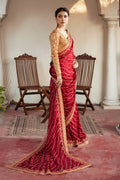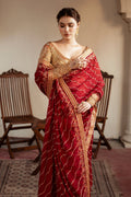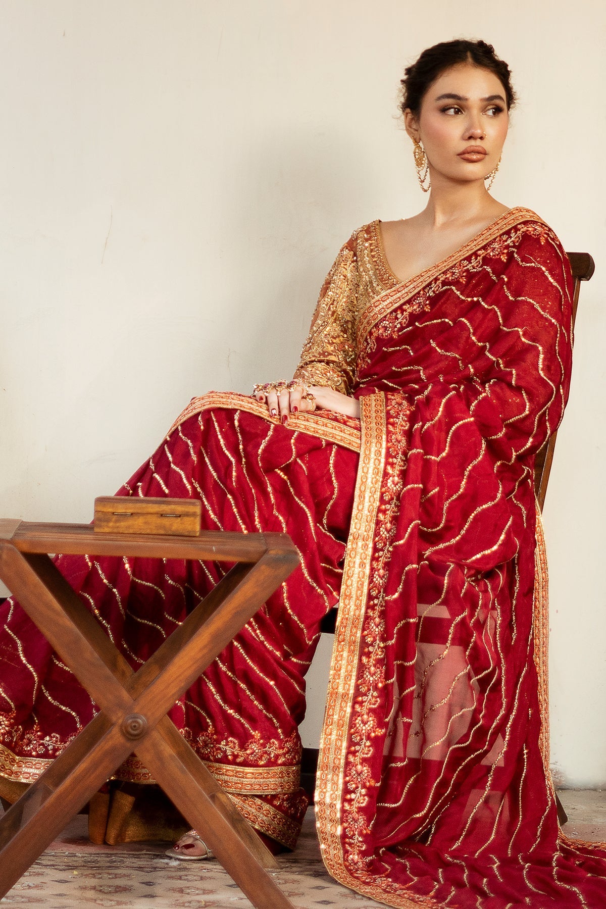 Embroidery rich with gleaming tilla and resham threads, delicately intertwined with pure zardozi artistry. Adorned in luxurious Swarovski crystals, kora, dabka, nakshi, and intricate French knots, each detail sparkles with sequins, Japanese cut beads, and crystal droplets, creating an opulent harmony. A canvas of timeless beauty, crafted to captivate.