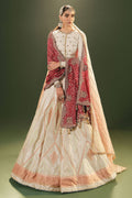 Illuminate the scene with the Ratan ensemble, featuring a chandi-hued lehenga adorned with pink and green appliques, block print, and goti. The Indian silk choli showcases block and adda work, while the double-tone dupatta with block and goti-enhanced trims captures the essence of contemporary regality.