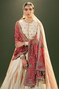dupatta: Double-tone dupatta with block and goti enhanced with trims.