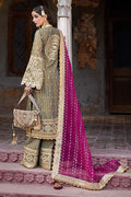 Behold the 'Nawab Sahiba' ensemble, a regal masterpiece for the modern bride. This opulent creation is adorned with Tilla karandi stripes, meticulously embroidered and embellished with twin sequins, mirrorwork, and intricate Tilla work throughout the shirt. The ensemble is elevated by the addition of an organza dupatta featuring sequin strips and a sumptuous four-sided border, perfectly complementing the luxurious aesthetic.The elegance continues with the embroidered trouser, complete with borders of exquisite embellishments. 'Nawab Sahiba' is a testament to timeless grandeur and refined taste, making it the quintessential choice for brides who desire the utmost in sophistication and opulence.
