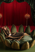 Step into the allure of "Afreen" from MNRss Dur-e-Nayab 2024 unstitched collection. This kohl-black silk ensemble captures the enchantment of a midnight sky with its intricate thread and tilla embroidery, accented by shimmering sequins, panni details, and hand-applied pearls. Refined silk borders add a polished touch, while the sleek silk gharara enhances the outfitss opulent feel. Paired with a black organza dupatta featuring embroidered pallus and an allover motif spray, "Afreen" is a stunning tribute to timeless elegance.