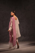 Experience elegance and luxury with the Nayaara 3 piece suit. The short shirt boasts a beautifully hand-embellished neckline with Swarovski crystals and intricate resham embroidery on the front panels. The side chalks feature hand-embellished paisleys for added charm. The set includes a skinny shalwar with a hand-embellished hemline and a pure organza duppatta in lavender with ivory detailing. Elevate your style with this stunning ensemble.