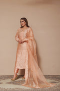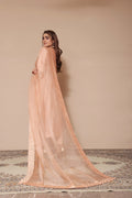 Peach sheesha silk with intricate hand work of sequence with intricate hand embellished zardozi work pairing up with straight pants