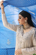 The dupatta is pure silk electric blue with 4 sides sequence spray and hand crafted botties in center. It comes with straight pants or Ezar.