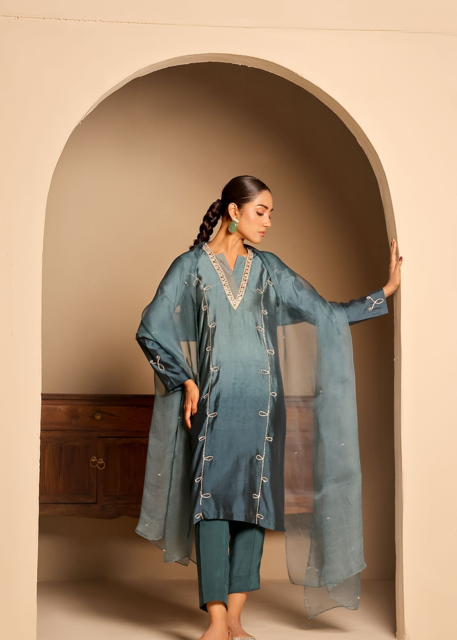 Shirt sheesha silk/ pure organza dupatta / viscose silk pants