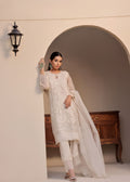 Step into timeless elegance with Mona Imran's all ivory pure khaddi net knee-length shirt ensemble. This exquisite piece is adorned with hand applique work on the front, back, and sleeves, enhancing its beauty with delicate craftsmanship.