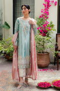 Eman is a stunning ensemble crafted with meticulous attention to detail. The satin zari fabric shirt features intricate embroidery and embellishments, showcasing timeless artistry. Paired with luxurious jamawar trousers and a delicate zari tissue dupatta, this outfit exudes sophistication and grace. Eman is a perfect choice for those seeking a blend of classic charm and modern elegance.