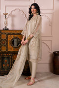 This beige gown front & sleeves comprise of hand adda embellishments, embroidery, sitari work & contrasting touches. The mid front, gown hem & sleeves are adorned with boring patterns. The sleeves have side slit to enhance the look. The dupatta is adorned with 2-sided length wise embroidered border with pink hues & sequin work along with mid motif spread. Outfit comes with separate inner & straight pants.