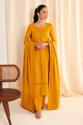 Introducing Golden Hour from the FALL PRETs24 collection-a masterpiece in mustard karandi fabric. This intricately embroidered outfit showcases same-on-same tones, featuring a chic front-open shirt design and it is paired with a stunning karandi shawl, adorned with intricate embroidery on its borders and pallus, Golden Hour is the perfect choice for winter, offering both sophistication and warmth.