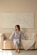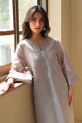 This muted grey outfit is the perfect balance of elegance and ease. Delicate floral embroidery adds a soft touch across the shirt, giving it just the right amount of detail. Furthermore, the neckline features intricate embroidery that draws the eye and adds a subtle yet refined finish.