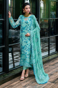 Embroidered And Printed Chiffon Shirt Paired With Embroidered Chiffon Dupatta And Dyed Rawsilk Trouser And Inner