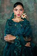 Embroidered, Printed And Embellished Organza Shirt Paired With Embroidered Organza Dupatta, Dyed Raw Silk Trouser And Inner