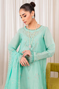 4pc Ready To Wear Embroidered Paper Cotton Shirt Paired With Embroidered Chiffon Dupatta, Dyed Cotton Trouser And Inner