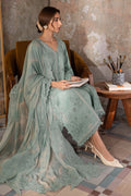 Embroidered Karandi Shirt Paired With Embroidered Chiffon Dupatta And Dyed Karandi Trouser