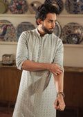 Introducing Shahmeer , A true embodiment of refined elegance and timeless grace. Crafted from the finest premium fabric, the kurta is meticulously designed with intricate embellishments and delicate sequin work, adding a layer of understated luxury. The tailored fit ensures both ease and sophistication, while the perfectly paired trousers offer seamless harmony to the look. Accentuating the ensemble is a coordinating shawl, exquisitely detailed to elevate the regal essence of the outfit. A seamless blend of tradition and contemporary style, this set is the ultimate choice for those who seek understated opulence, whether for formal occasions or festive celebrations. A quintessential addition to the modern manss wardrobe, where classic charm meets modern-day allure.