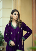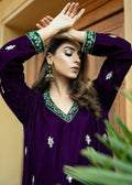 Royal Purple vlevet long shirt all handworked with resham, naqshi, dabka and sheesha with jamawar borders again handworked