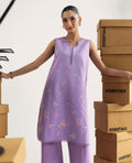 Crafted in a subtle lilac-toned self-jacquard fabric, this mid-length shirt features an elegant play of pastel-hued embroidery motifs that add a refined charm. Designed for comfort and versatility, it makes the perfect pick for chic everyday wear while keeping you effortlessly stylish.