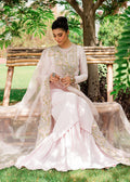 A gorgeous rose pink ensemble paired with farshi gharara, It comes with an organza dupatta along with heavily embroidered and embellished border.