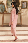 A Pretty Pink Co-Ord Set Featuring A Classic Front Open Jacquard Shirt, Scalloped Edges And Cuffed Sleeves, Paired With Culottes.