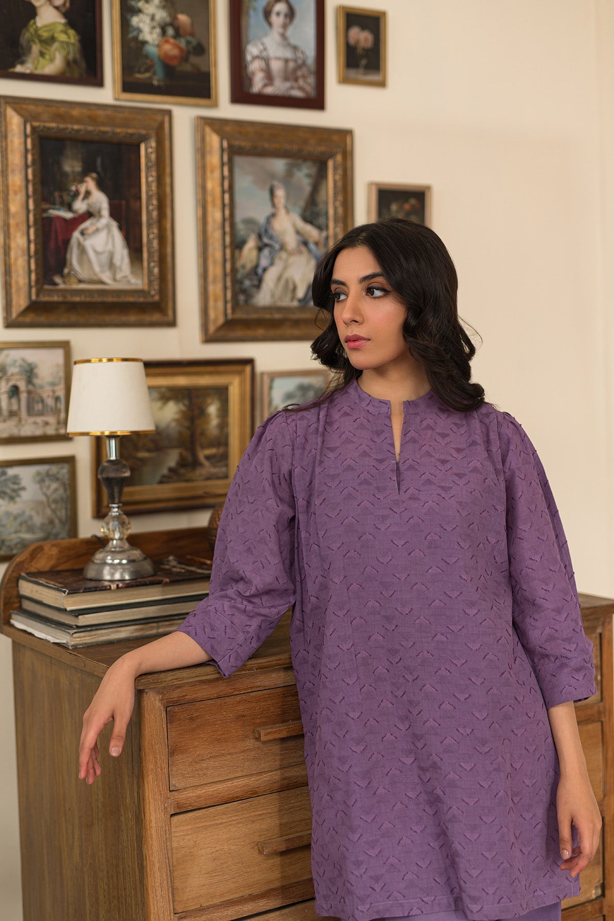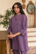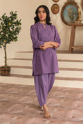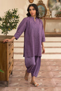 A Trendy Purple Co-Ord Set, Featuring A Classic Straight-Cut Jacquard Shirt With Pleated Sleeves, Paired With A Contemporary Shalwar.