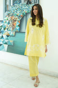 The Yellow Co-Ord Set Features A Floral Embroidery On The Front And Sleeves, Paired With Straight Trousers.