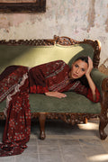 Make a bold yet graceful statement with this rich maroon ensemble. This outfit is adorned with intricate embroidery along the neckline and borders, paired with delicate lace finishing at the hem and sleeves. The subtle floral patterns enhance the deep maroon base, giving it a timeless allure. Styled with matching straight trousers featuring lace accents and a beautifully embroidered shawl, this outfit is a true expression of elegance and sophistication.