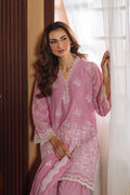 charming pink outfit adorned with lovely floral schiffli detailing on the hem and accents on the neckline and sleeves. Enhances by a light chiffon embroidered dupatta. Perfect choice for summer.