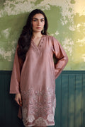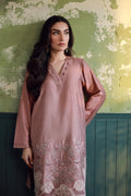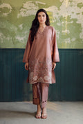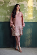 Autumn Blush is pink co-ord set features floral cutwork embroidery on the front and neckline design. Paired with straight trousers.Â