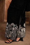 Straight Shirt With Pleated Placket And Intricately Embroidered Lace On Sleeves, Paired With Embroidered Culottes For A Chic, Modern Look.