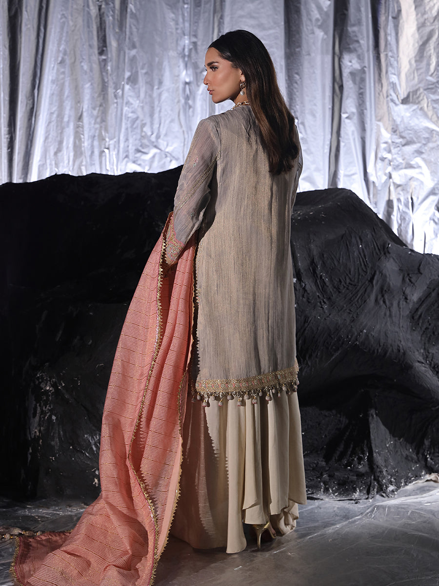 Fancy Yarn Dyed Embroidered Front With Dori And Zari, Sequins (1.04 Apx)