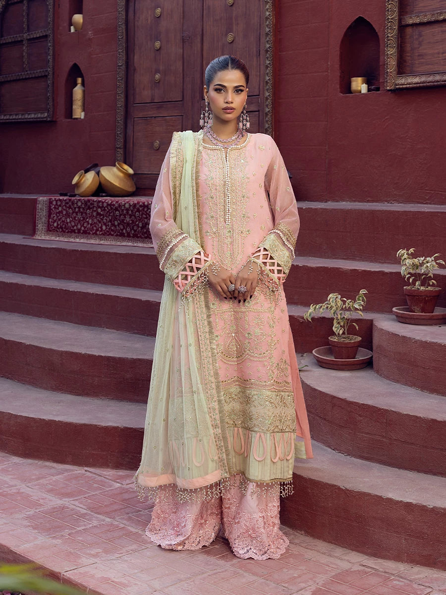 Khaddi Net Dyed Embroidered Front With Dori & Seq 1.45 Meter Approx.