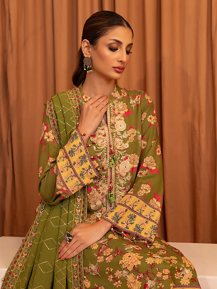 Karandi Printed Embroidered Shirt (1.63 Meter Apx)