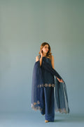 pure 80 gms rawsilk short shirt with hand embellishments on sleeves and daaman with cut daana work. Paired with a pure 80 gms rawsilk farshi shalwar. Dupatta is pure medium organza full of sequins spray and cut daana hand embellishments on both the palloos