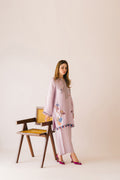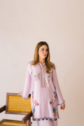 Pure sheesha silk short shirt with multi cored applique, embroidery, mirror work and sequins spray. Daaman finished with multi coloured organza finishing and sleeves. Paired with short culottes with thread detailing.