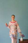 A super pretty digital print lawn co ord with two colored scallops detailing on neckline. Paired with printed lawn culottes.