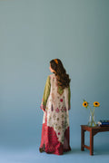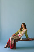 A gorgeous digital print lawn long caftan style shirt with tassel detailing on the neckline. Sleeves have tassels and stone hangings. Paired with a pure plain magenta lawn capri pants.
