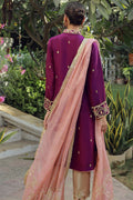 Plum silk shirt with embellished neckline, front and sleeves. It can be paired with embellished lame culottes and coral, maisuri dupatta with gota borders.