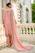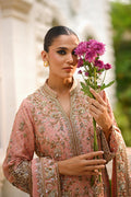 A delicate embrace of peach tones, lit with golden shimmer. The straight cut kurta crafted from cotton net is meticulously embroidered with zardoze, sequins, kamdani, and beadwork, its neckline, sleeves, and hem brought to life with gleaming lattice cutwork along the borders and side slits. Paired with tailored pure raw silk culottes embroidered with motifs at the hem, the look finds harmony in detail and restraint. A cotton net dupatta, edged with sparkling kamdani borders and scattered embellishments, floats weightlessly to lend a radiant finish to the ensemble.