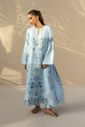 Rendered in a serene sky blue hue, this pure rawsilk kurta features artisanal embroidery and applique details in tonal and cobalt threads, embodying timeless elegance. Paired with tailored pure rawsilk trousers in a matching tone, the ensemble balances quiet luxury with a refined, feminine allure