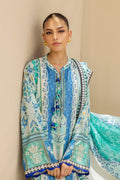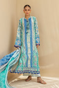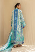 An ensemble that channels Mediterranean ease through a breezy palette of azure, ivory and seafoam, accented with deep cobalt. Crafted from khaddi silk, the shirt is adorned with intricate linear and floral patterns that cascade along its length. Subtle tassel ties at the neckline add fluidity, while scalloped edging on the sleeves, front, and hem creates a softly dimensional finish. Paired with a printed medium silk dupatta in oceanic hues and ivory toned pure rawsilk culottes.