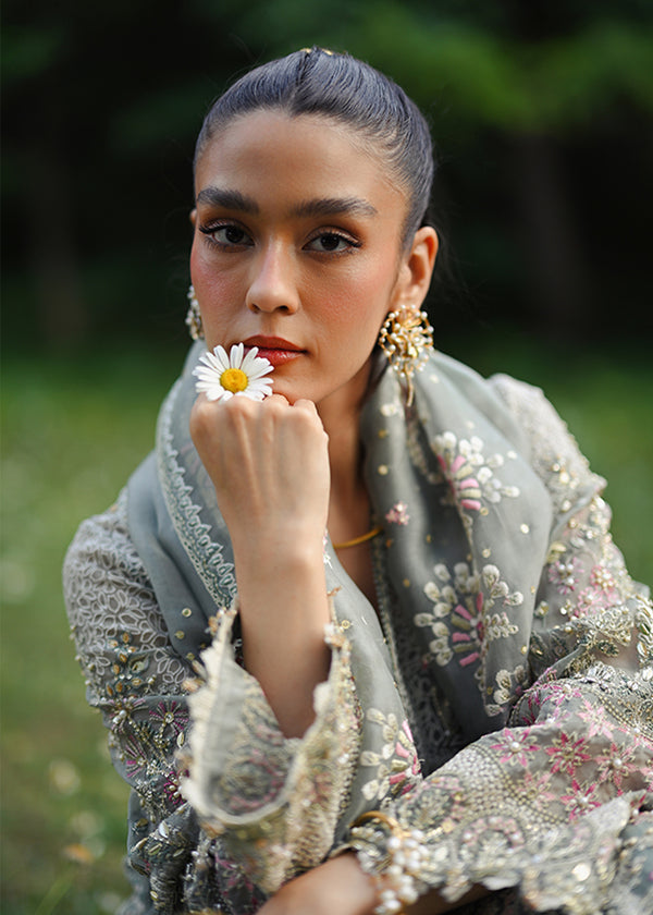 Organza dupatta, with embroidered borders and sequins details, styled with tassels.