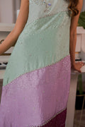 A Jewel 3 tone assymetrical raw silk shirt with sequins and dabka work on it.
