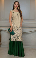 Step into the spotlight with our Cutwork Embroidered jacket, featuring delicate sequins, and pearls detailing , is perfectly complemented by the skirt for a polished and refined look. This outfit radiates elegance and charm, making you feel confident and poised.